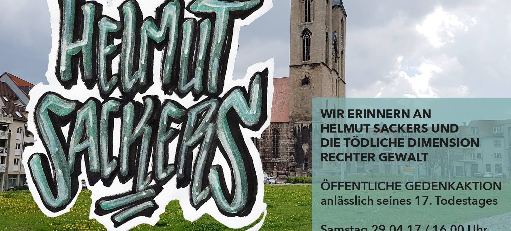 Die öffentliche Würdigung Helmut Sackers als Todesopfer rechter Gewalt wird von der Initiative Würdiges Gedenken für Helmut Sackers organisiert und von der Mobilen Beratung für Opfer rechter Gewalt und dem BürgerBündnis für ein gewaltfreies Halberstadt unterstützt.